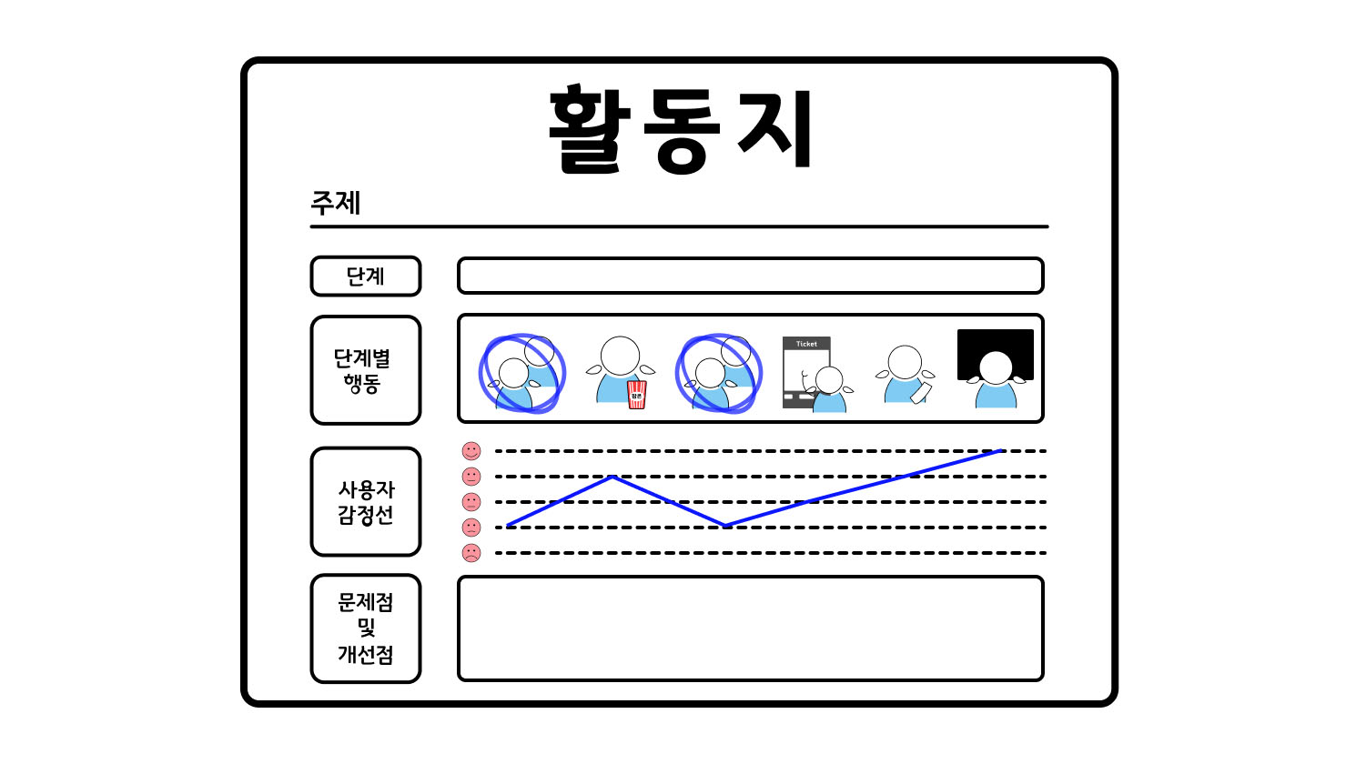 · 고객여정지도는 페르소나의 경험을 중심으로 작성됩니다.